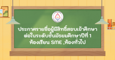 • ประกาศรายชื่อผู้มีสิทธิ์สอบเข้าศึกษาต่อในระดับชั้นมัธยมศึกษาปีที่ 1 ห้องเรียน SME ,ห้องทั่วไป